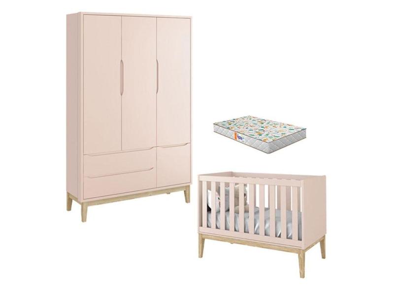 O menor preço encontrado no Brasil para Berço Americano e Guarda Roupa 3 Portas New Classic Rosa com Pés Madeira Natural e Colchão Gazin - Reller atualmente é R$ 1.811,79.