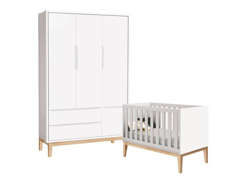 O menor preço encontrado no Brasil para Berço Americano E Guarda Roupa Classic 3 Portas Branco Com Pés Madeira Natural - Reller atualmente é R$ 1.850,81.