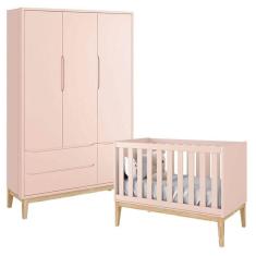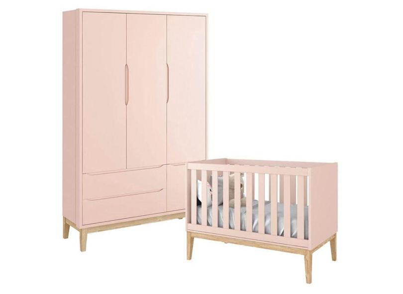 O menor preço encontrado no Brasil para Berço Americano E Guarda Roupa Classic 3 Portas Rosa Com Pés Madeira Natural - Reller atualmente é R$ 1.773,43.