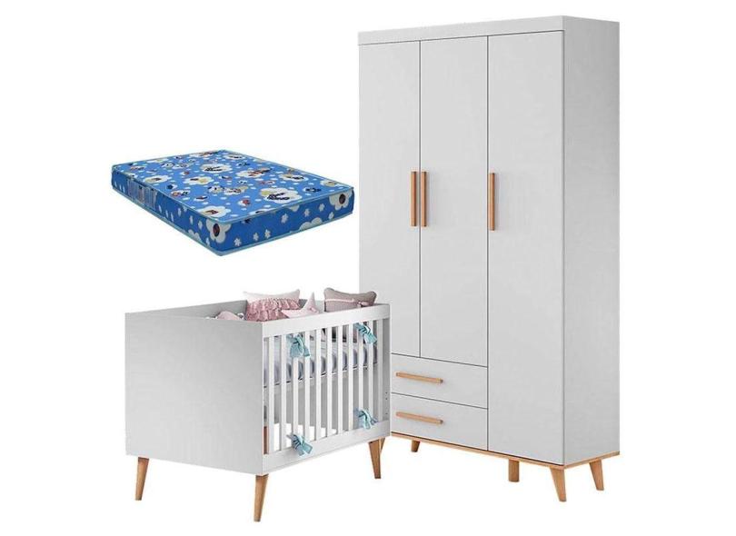 Berço Americano E Guarda Roupa Infantil Ludmila Branco Bétula Com Colchão Ortobom - Carolina
