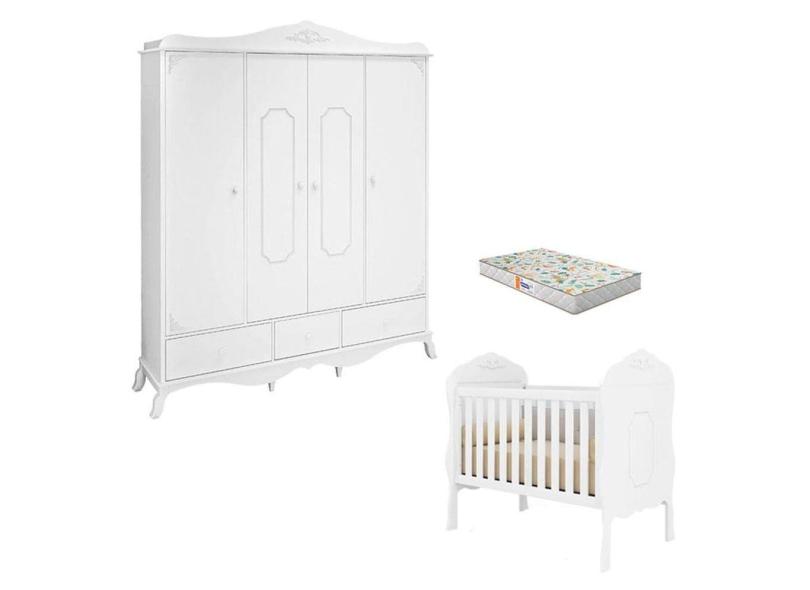 Berço Americano e Guarda Roupa Realeza Branco Acetinado com Colchão Gazin – Canaã
