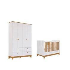 Berço Americano e Guarda Roupas Biscoito Permobili Retro MDF, Branco A