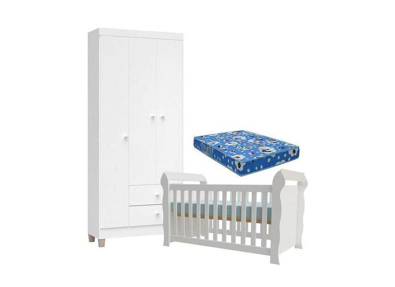 Berço Americano Lara Com Colchão E Guarda Roupa Ternura Baby 3 Portas