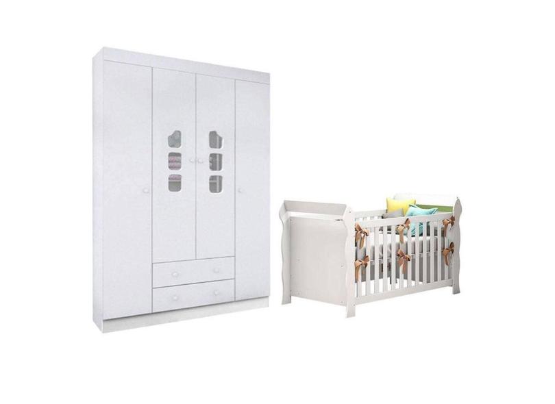 Berço Americano Lara E Guarda Roupa Infantil Lívia Branco Brilho - Phoenix