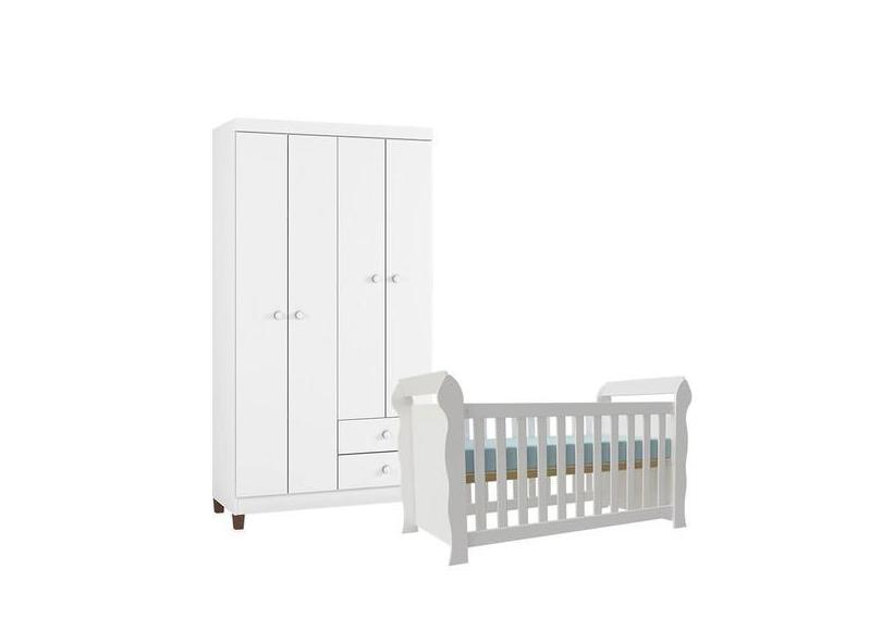 Berço Americano Lara E Guarda Roupa Ternura Baby 4 Portas Branco Brilh