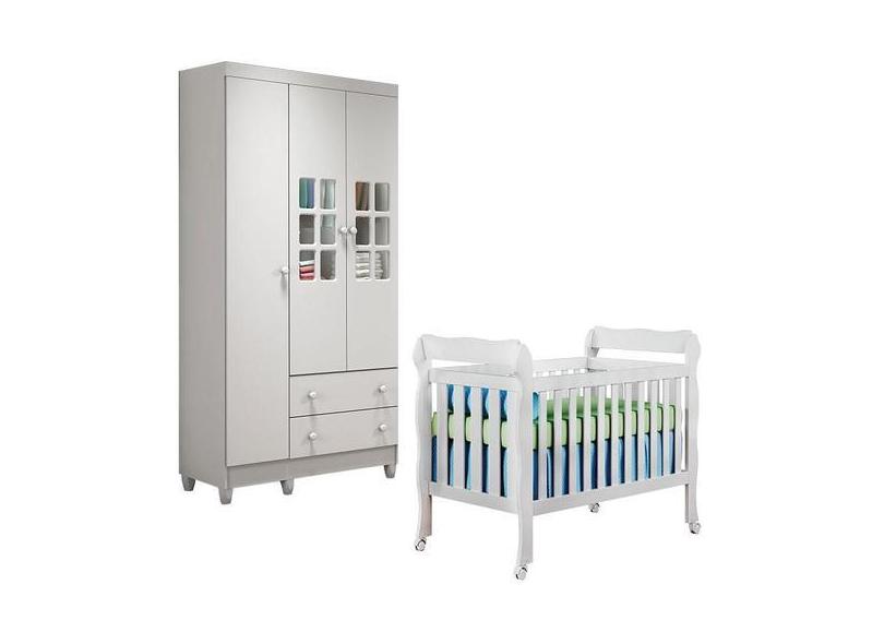 Berço Americano Lila E Guarda Roupa Mariah 3 Portas Branco Brilho Car