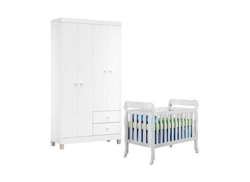Berço Americano Lila E Guarda Roupa Ternura Baby 4 Portas Branco Brilh