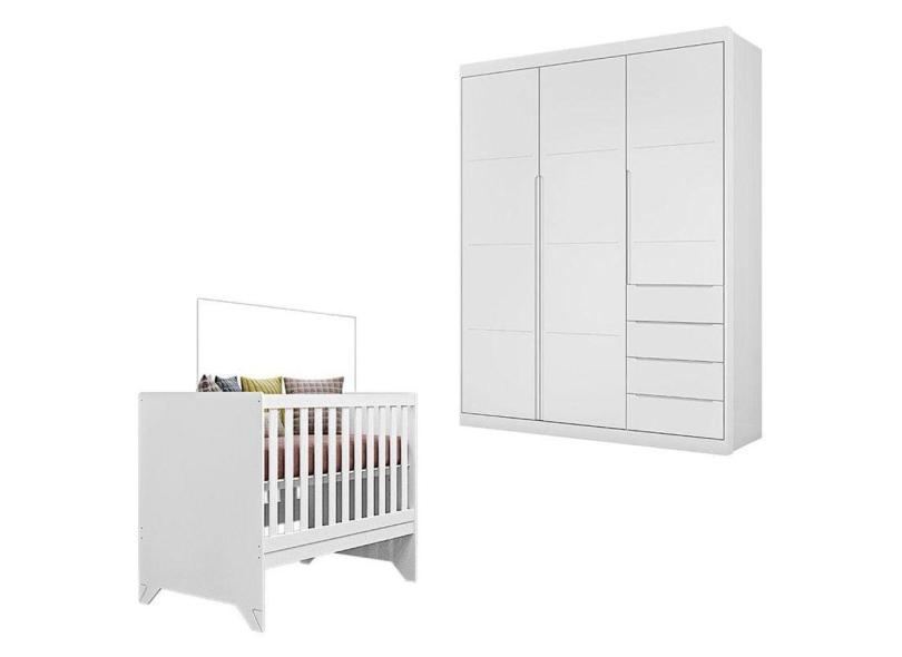 Berço Americano Maya E Guarda Roupa Infantil Blenda Branco Acetinado - Phoenix Baby