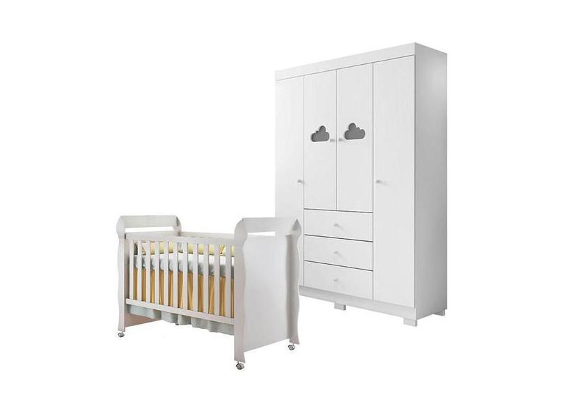 Berço Americano Mirelle E Guarda Roupa Infantil Ane Branco Brilho Pho