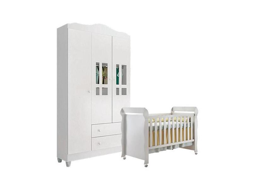 Berço Americano Mirelle E Guarda Roupa Infantil Ariel 3 Portas Branco