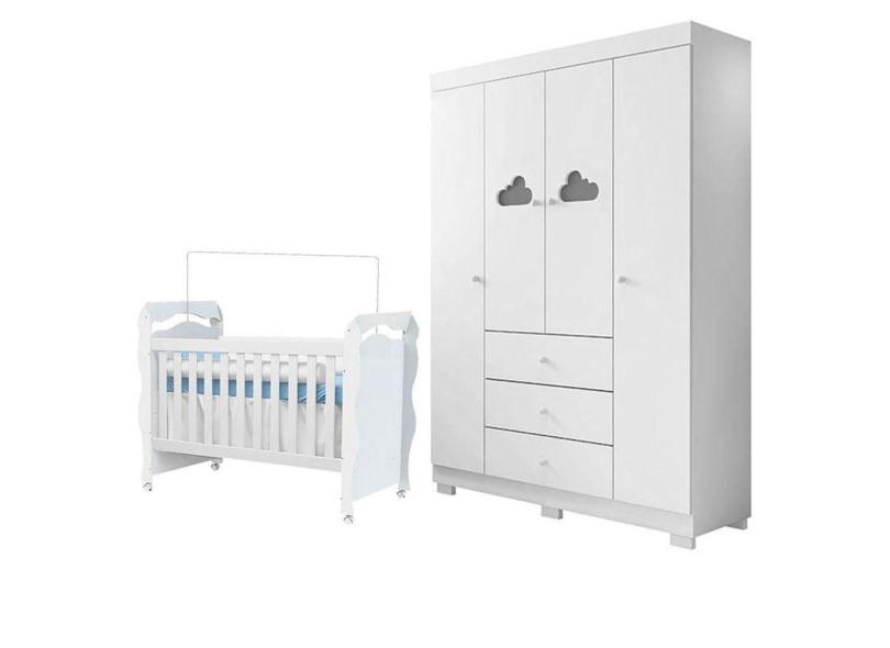 Berço Americano New Nanda E Guarda Roupa Infantil Ane Branco Brilho - Phoenix Baby