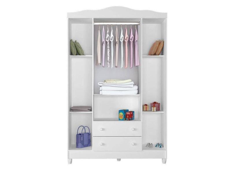 Berço Americano New Nanda E Guarda Roupa Infantil Ariel 4 Portas Branco Brilho - Carolina