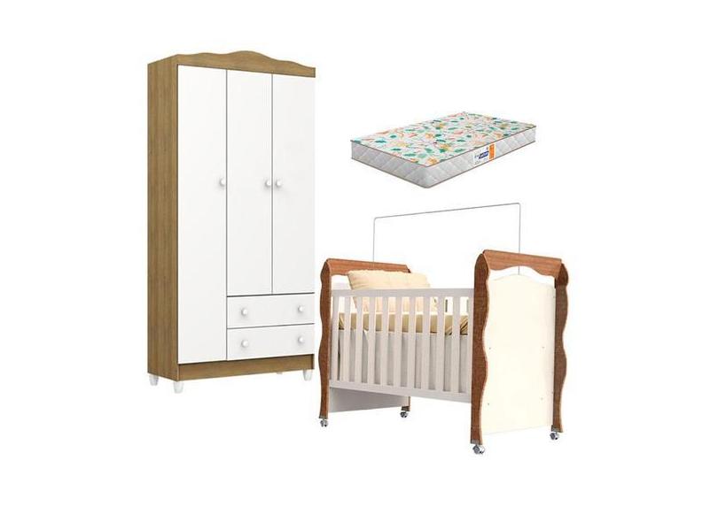 Berço Americano New Nanda E Guarda Roupa Infantil Mel Flat 3 Portas Br