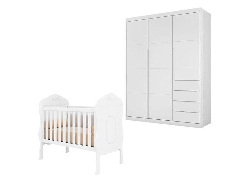Berço Americano Realeza E Guarda Roupa Infantil Blenda Branco Acetinado - Phoenix Baby