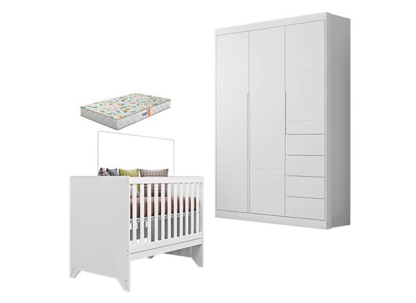 Berço Americano Retro Maya e Guarda Roupa Infantil Eloá Branco Acetinado com Colchão Gazin - Phoenix Baby