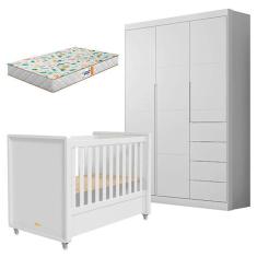 Berço Americano Tutto New e Guarda Roupa Infantil Eloá Branco Acetinado com Colchão Gazin – Phoenix Baby