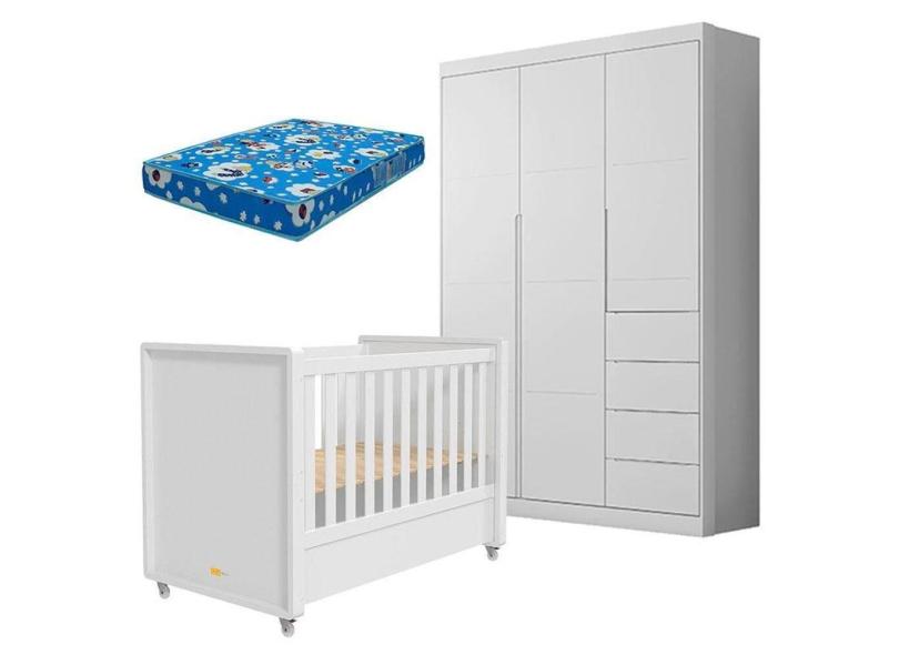 Berço Americano Tutto New e Guarda Roupa Infantil Eloá Branco Acetinado com Colchão Ortobom – Phoenix Baby