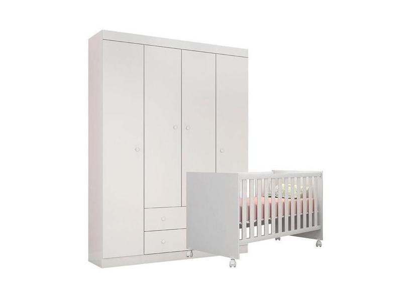 Berço Doce Sonho E Guarda Roupa Infantil Helena Branco Brilho - Phoeni