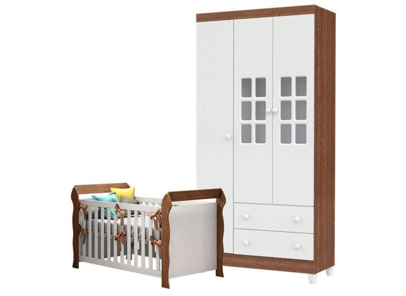 Berço Lara E Guarda Roupa Infantil 3 Portas Mariah Branco Acetinado Amadeirado - Carolina