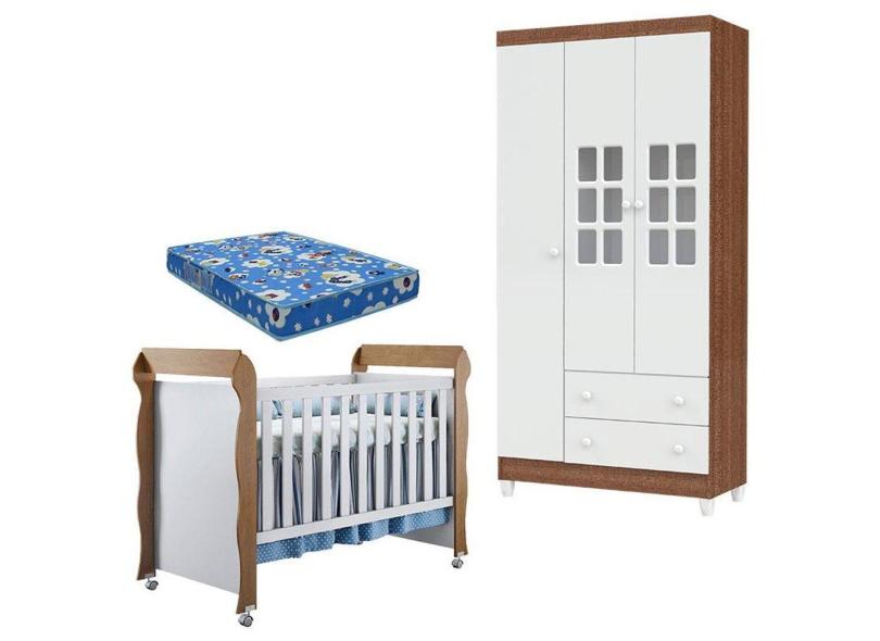 O menor preço encontrado no Brasil para Berço Mirelle e Guarda Roupa Mariah 3 Portas Branco Acetinado Amadeirado com Colchão - Carolina atualmente é R$ 988,34.