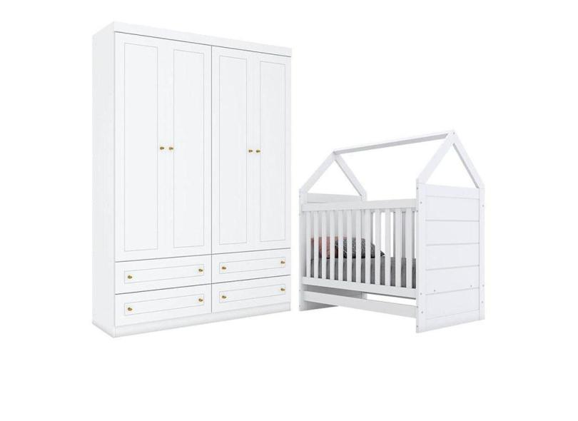 O menor preço encontrado no Brasil para Berço Montessoriano Americano e Guarda Roupa Infantil Mississipi 4 Portas Branco HP - Henn atualmente é R$ 1.769,36.