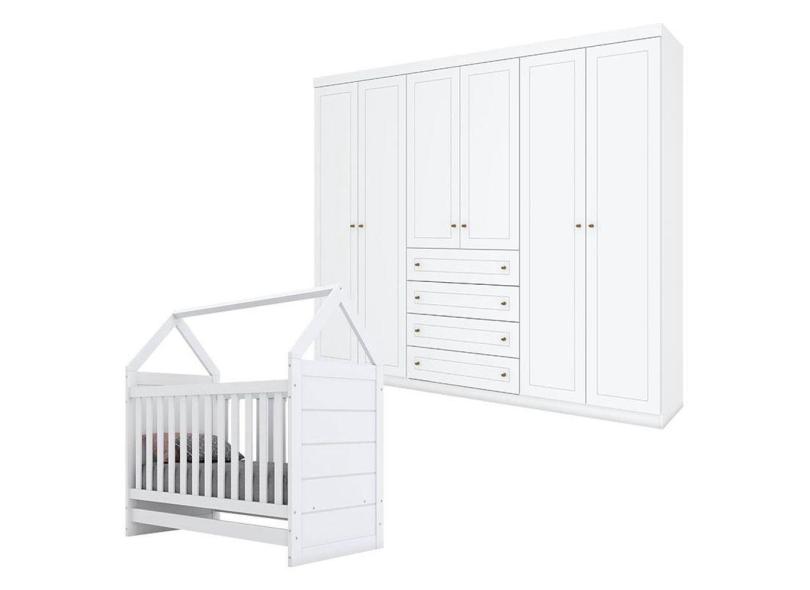 Berço Montessoriano E Guarda Roupa Infantil Mississipi 6 Portas Branco Hp - Henn