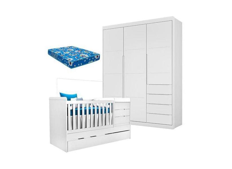 Berço Multifuncional Cleo Com Guarda Roupa Blenda Branco Acetinado E C