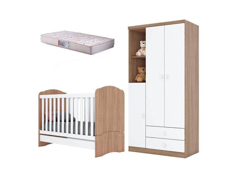 Berço Nacional Bala de Menta e Guarda Roupa Infantil Pique-Esconde Rústico Branco com Colchão Gazin - Henn
