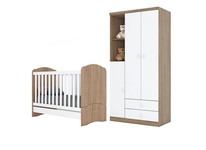 O menor preço encontrado no Brasil para Berço Nacional Bala de Menta e Guarda Roupa Infantil Pique-Esconde Rústico Branco - Henn atualmente é R$ 869,17.