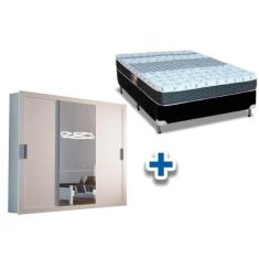 Cama Box Casal + Colchão Class Castor + Guarda Roupa Veneza Luxo Branc