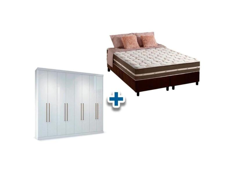 Cama Box Casal + Colchão Classic + Guarda Roupa Master Vip 8.4 Branco