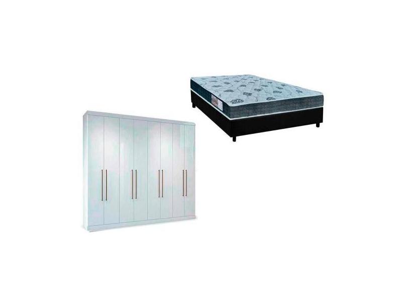 Cama Box Casal + Colchão D45 Cecina + Guarda Roupa Master Vip 8.4 Bran