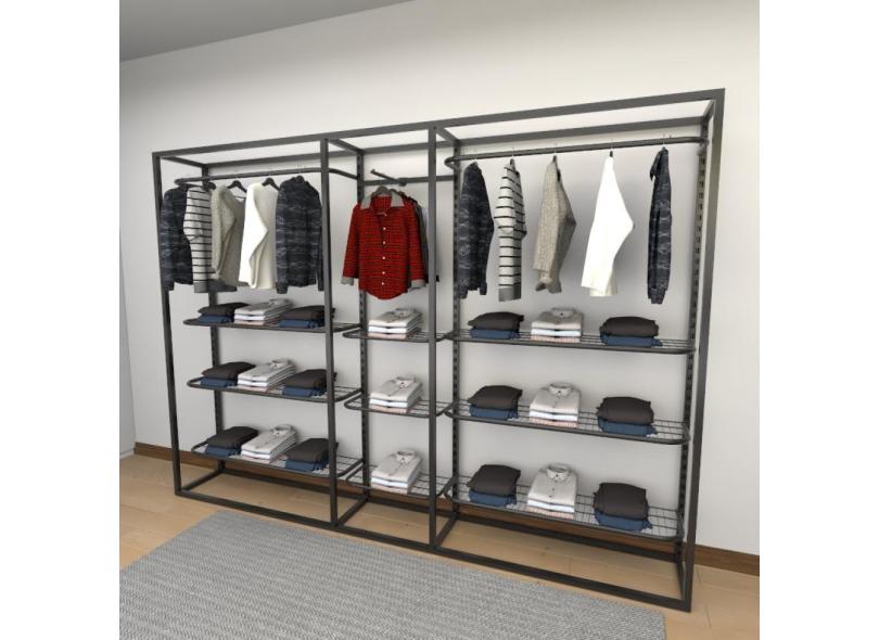 Closet Araras, Guarda Roupas Aberto Industrial Com 16 Peças Preto Fdprp425