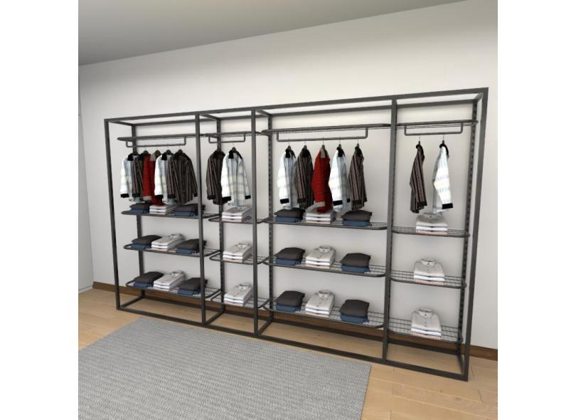 Closet Araras, Guarda Roupas Aberto Industrial Com 20 Peças Preto Fdprp531