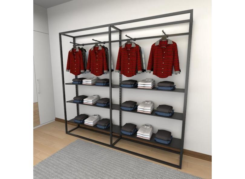 Closet Araras, Guarda Roupas Aberto Industrial Com 26 Peças Preto Fdprp30