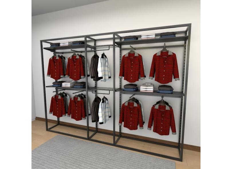 Closet Araras, Guarda Roupas Aberto Industrial Com 29 Peças Preto Fdprp361