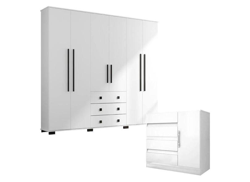 Cômoda 8000 e Guarda Roupa Casal B23063 Branco - Araplac