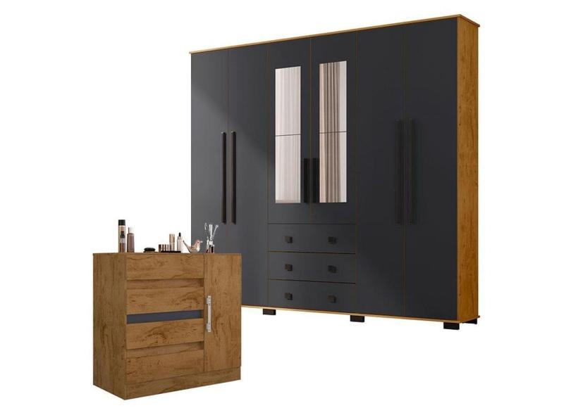 O menor preço encontrado no Brasil para Cômoda 8000 e Guarda Roupa Casal B23063 Freijó Carbono com Espelho - Araplac atualmente é R$ 1.097,25.