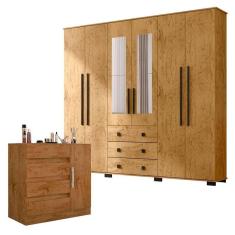 Cômoda 8000 e Guarda Roupa Casal B23063 Freijó com Espelho - Araplac