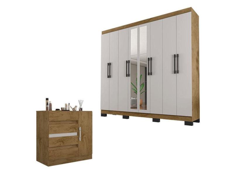 Cômoda 8000 E Guarda Roupa Casal B2348 Freijó Baunilha Com Espelho - Araplac