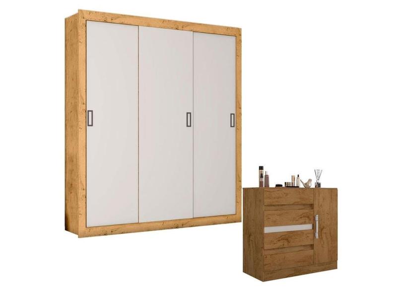Cômoda 8000 e Guarda Roupa Casal COR2303044 Freijó Baunilha Flex - Araplac