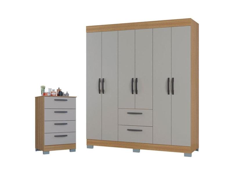 O menor preço encontrado no Brasil para Cômoda 867 4 Gavetas e Guarda Roupa Casal Tóquio 6 Portas Damasco Off White - Poquema atualmente é R$ 690,29.