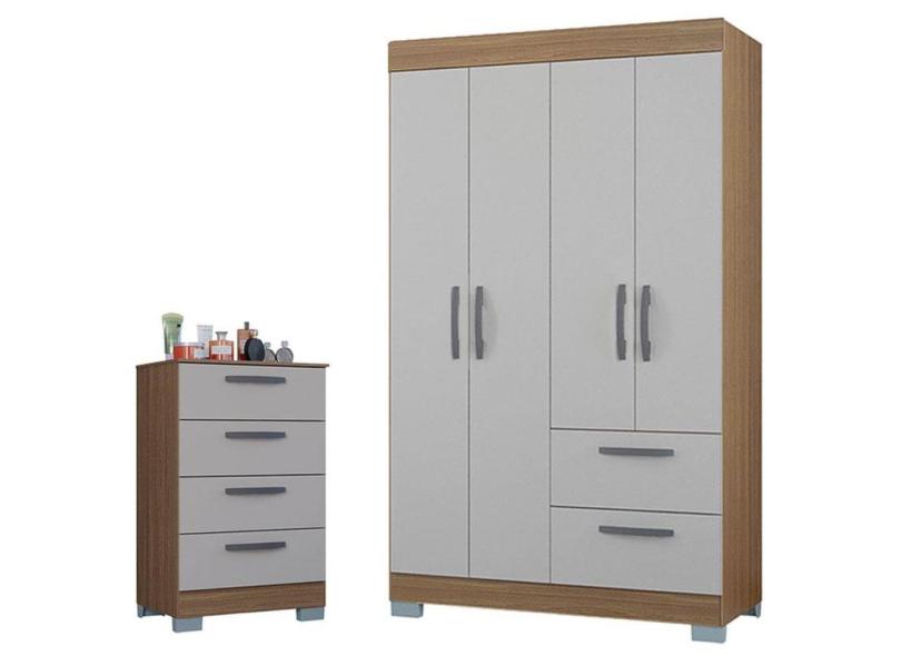 O menor preço encontrado no Brasil para Cômoda 867 4 Gavetas e Guarda Roupa Solteiro Tóquio 4 Portas Castanho Off White - Poquema atualmente é R$ 590,81.