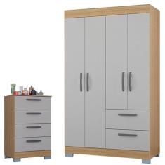 O menor preço encontrado no Brasil para Cômoda 867 4 Gavetas e Guarda Roupa Solteiro Tóquio 4 Portas Damasco Off White - Poquema atualmente é R$ 590,82.
