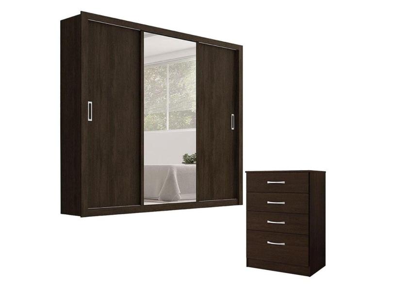 Cômoda Astral e Guarda Roupa Casal Residence Ébano - Demóbile