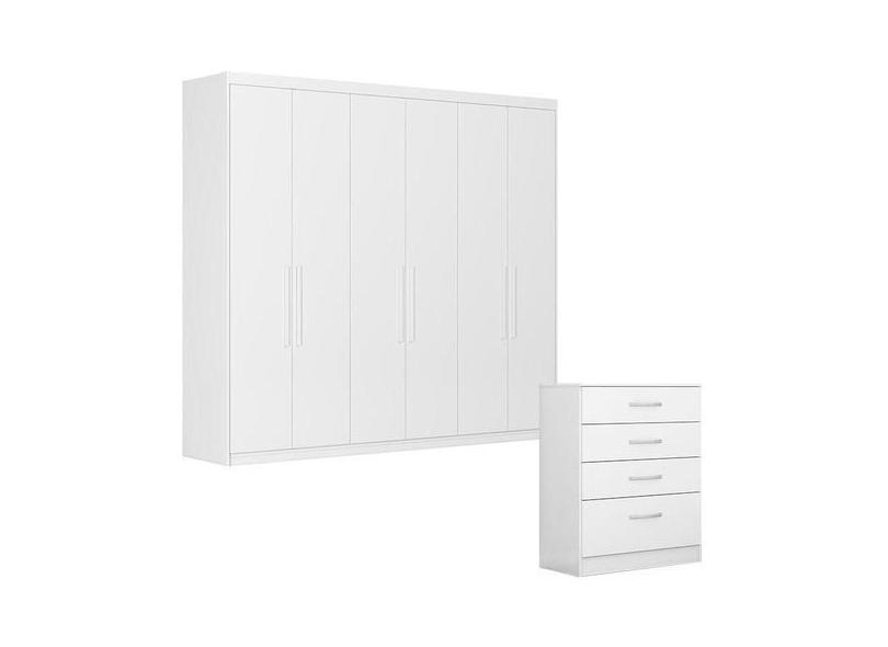 Cômoda Astral E Guarda Roupa Casal Venice 62080 Branco Brilho - Demóbi
