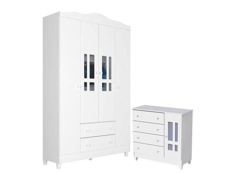 Cômoda E Guarda Roupa Infantil Ariel 4 Portas Branco Brilho - Carolina