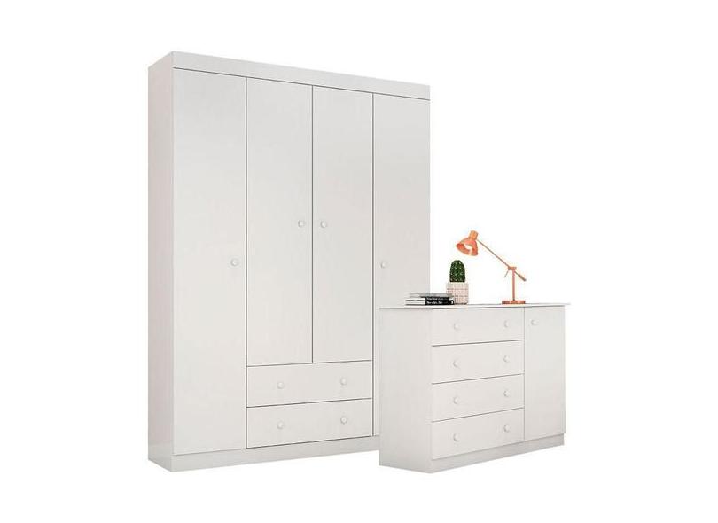 Cômoda E Guarda Roupa Infantil Helena Branco Brilho - Phoenix - Phoeni