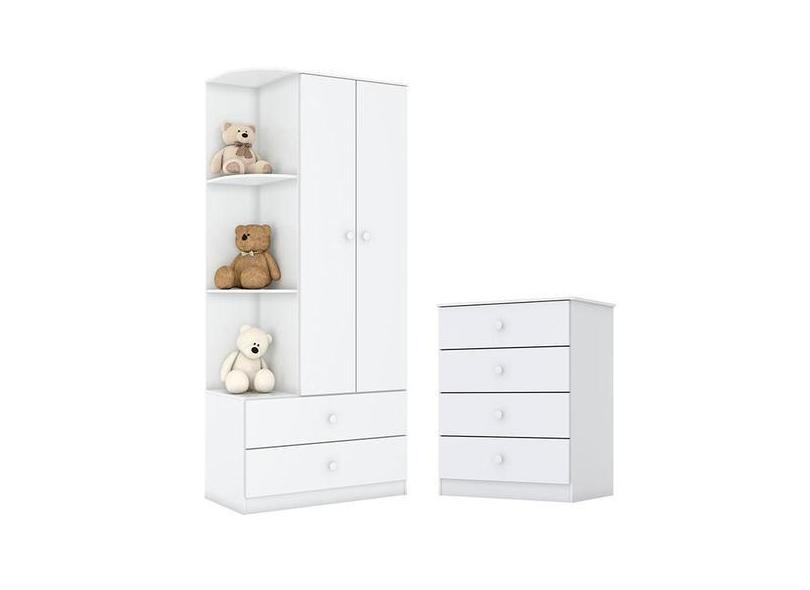 Cômoda E Guarda Roupa Infantil Labirinto Branco Brilho - Henn