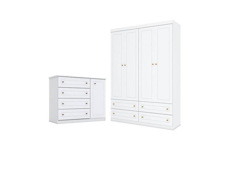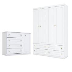 Cômoda E Guarda Roupa Infantil Mississipi 4 Portas Branco Hp - Henn